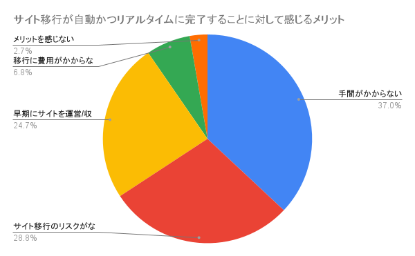 「サイト移行作業が自動かつリアルタイムに完了することについてどの点でメリットを感じますか?」に対しての回答は以下でした。
