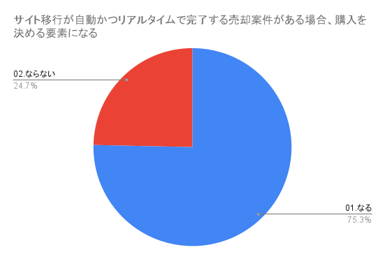 「サイト移行作業が自動かつリアルタイムで完了する売却案件がある場合、購入を決める要素になりますか?」に対しての回答は以下でした。