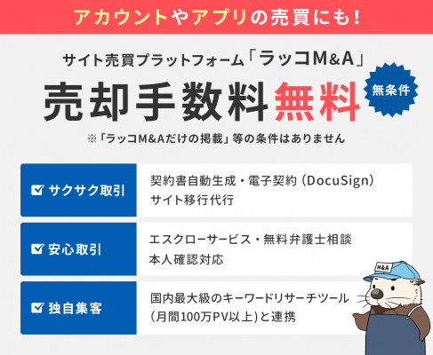 ラッコM&A:個人によるサイト売買が活発!個人でも安心な取引ができるラッコM&A【成約案件分析レポート】
