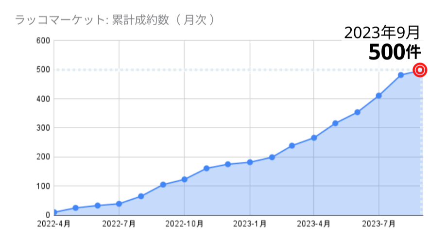 ラッコマーケットの累計成約数が500件を突破しました。2023年になってから顕著な成長を見せており、出品されたサイトの成約率は、84%を超えています。